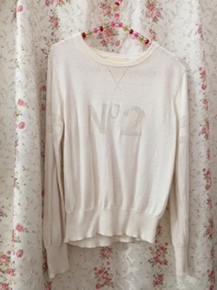 - 白 白 系 綿 ニット 長袖 L F フリー オフホワイト