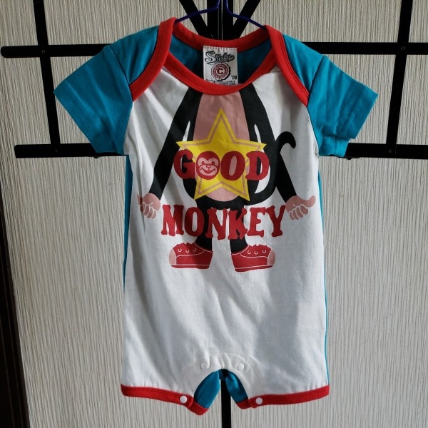 - 新品☆Shisky☆おさるのカバーオール【ホワイト×ブルー】70cm