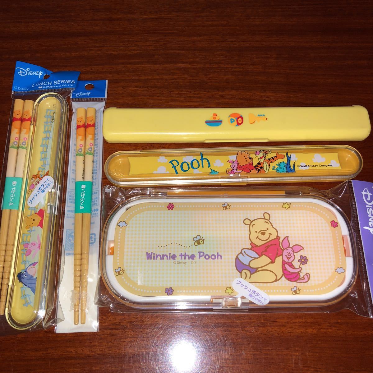 - くまのプーさん トリオセット はし はし箱 合計5点セット 新品未使用 中古品あり