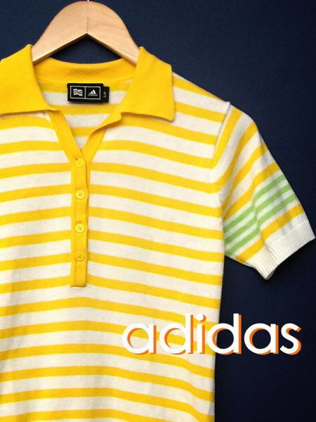 > テーラーメイドadidasアディダスニットポロシャツ黄色女 taylormade ゴルフ golf