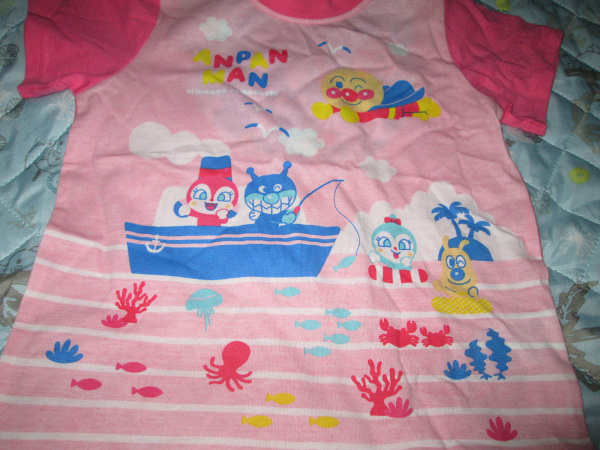 > ☆新品♪アンパンマンひんやり背あてつき半袖Tシャツ110cmピンク&タオル☆