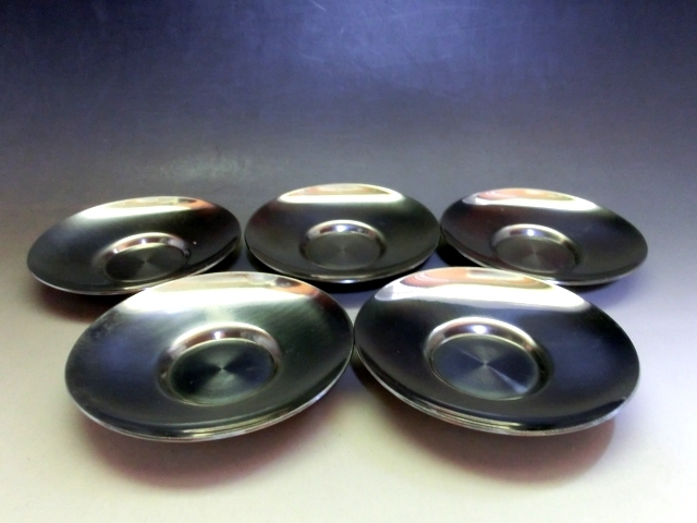 - 茶托■鉄製 5客「秀峰堂造」丸茶たく 煎茶お茶道具 古美術 時代物 骨董品■