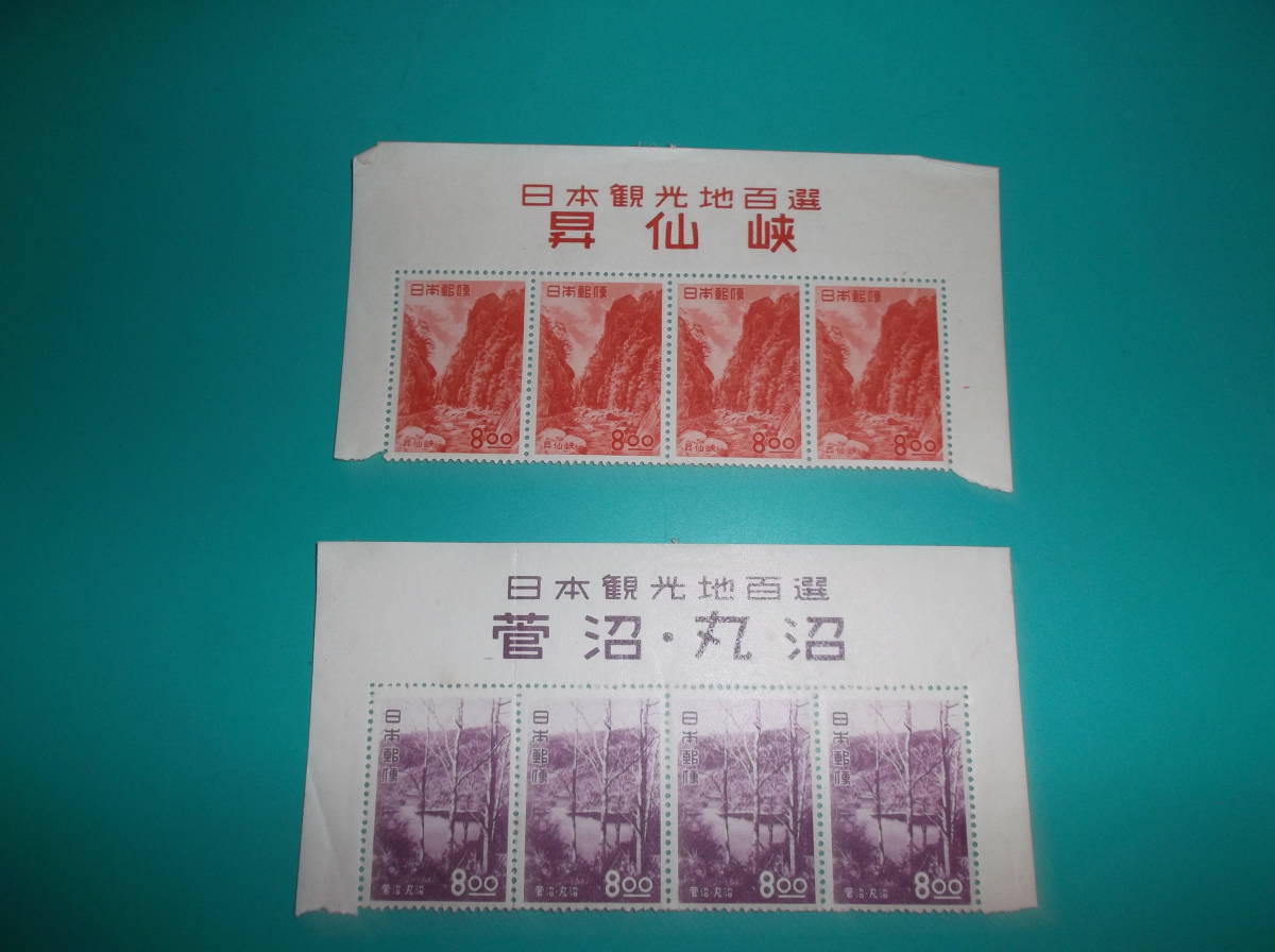 - 題名入り記念切手 日本観光地百選 4B 2種組 昇仙峡8.00 1951.10.15 菅沼・丸沼8.00 1951.10.1