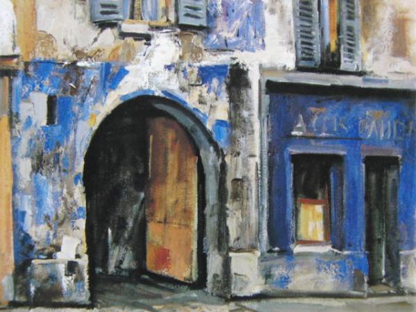 - 荻須 高徳、門と青い店、希少画集画、風景、自然、静物、人気作家、新品額・額装付、gao
