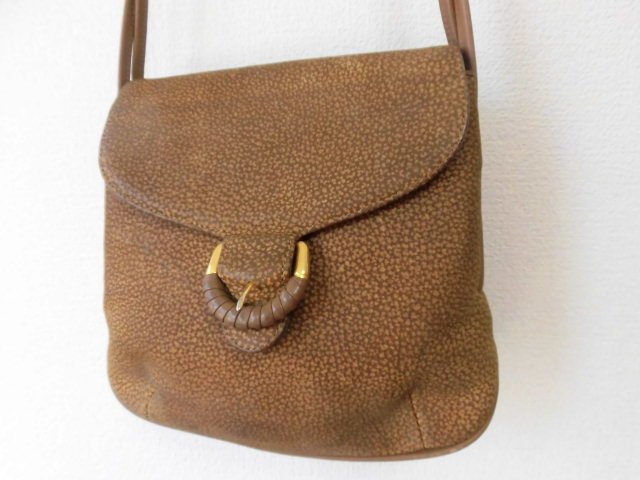 - ● Bienco ビエンコ イタリー製 茶系うずら模様 バックスキンショルダーバック