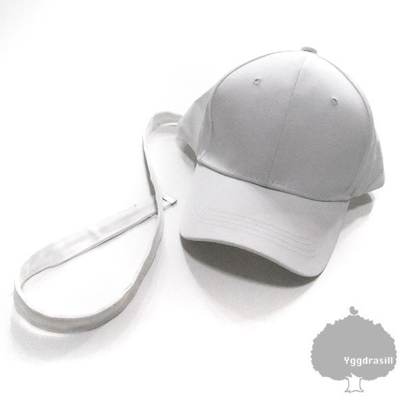 - YGG★新品 バック ロングストラップ付き キャップ 白 帽子 超長 ホワイト g-dragon着 ジヨン gd 韓流