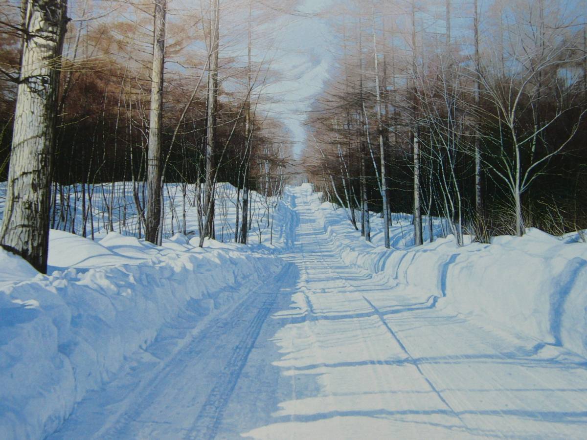 - 若井良一、『カラマツ林の道』、希少画集より、状態良好、新品木製額・額装付、送料込み、洋画、choco/5