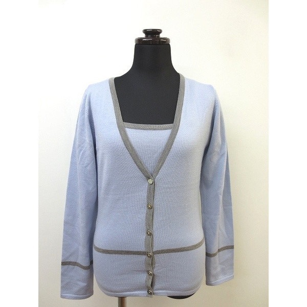 > 05【中古】*クイーンズコート QUEENS COURT バイカラー ニットアンサンブル 2 水色Xグレー レディース レターパックプラス利用可能
