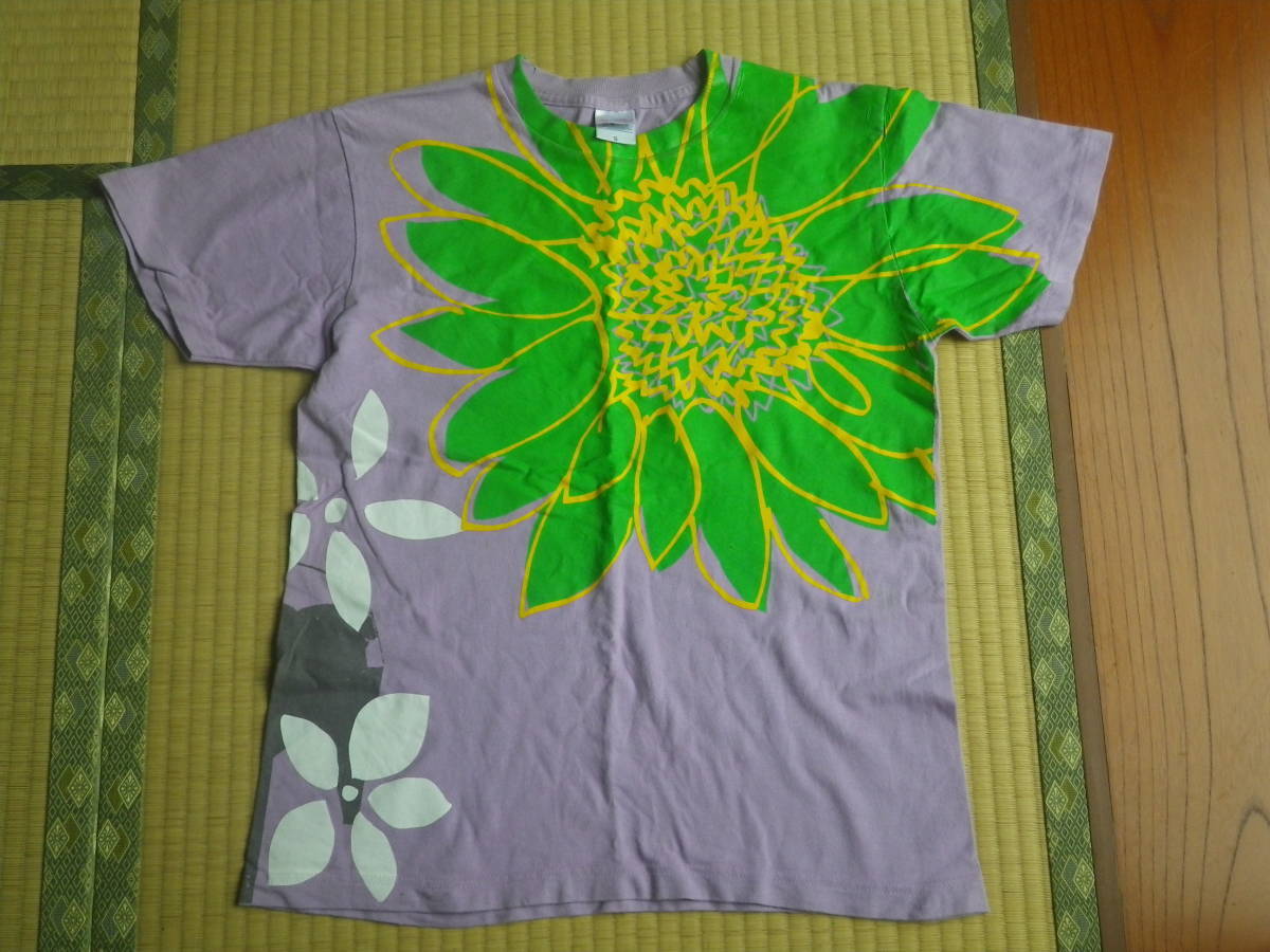 > 15【中古】*Printstar プリントスター 大判花柄 トロピカルペイント 半袖Tシャツ S 紫 海に映えます 送料無料