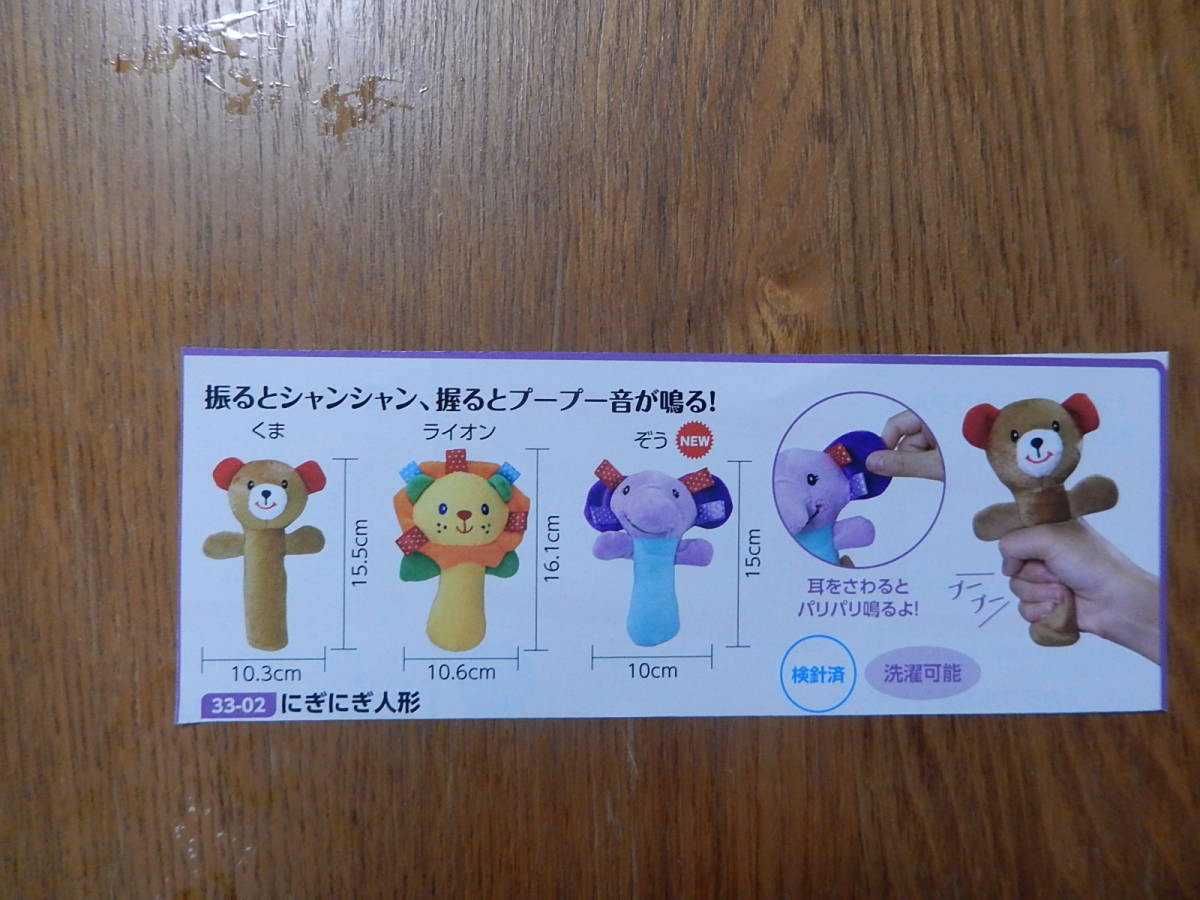 - 7557☆にぎにぎ人形 ライオン☆振るとシャンシャン音がする!☆握るとプープー音がなる!○
