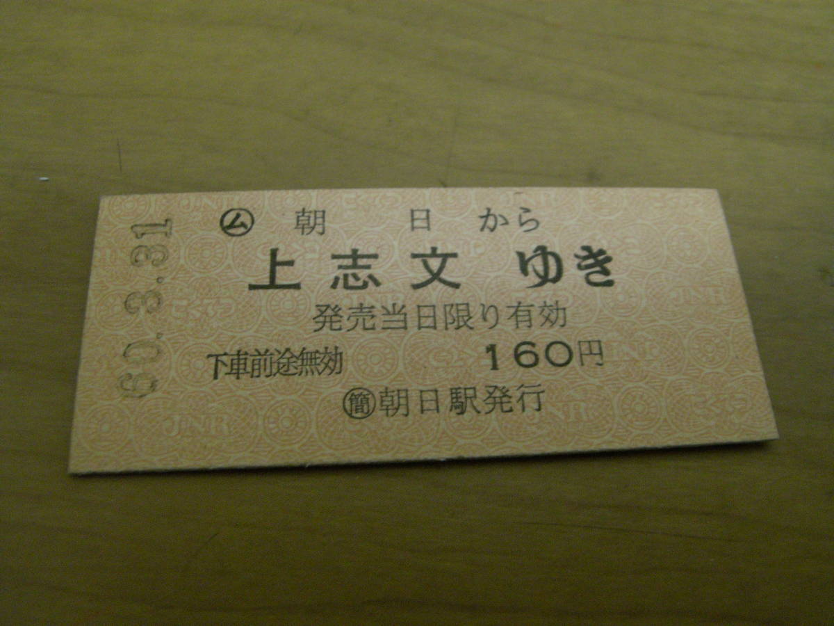 - 2枚/万字線から 朝日ゆき上志文ゆき 昭和60年3月31日 簡 朝日駅発行 大小2枚 ●営業最終日