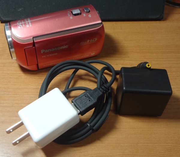 > ◆ビデオカメラ◆パナソニック(Panasonic・松下電器) HC-V300M レッド (中古) バッテリー・ケーブルあり
