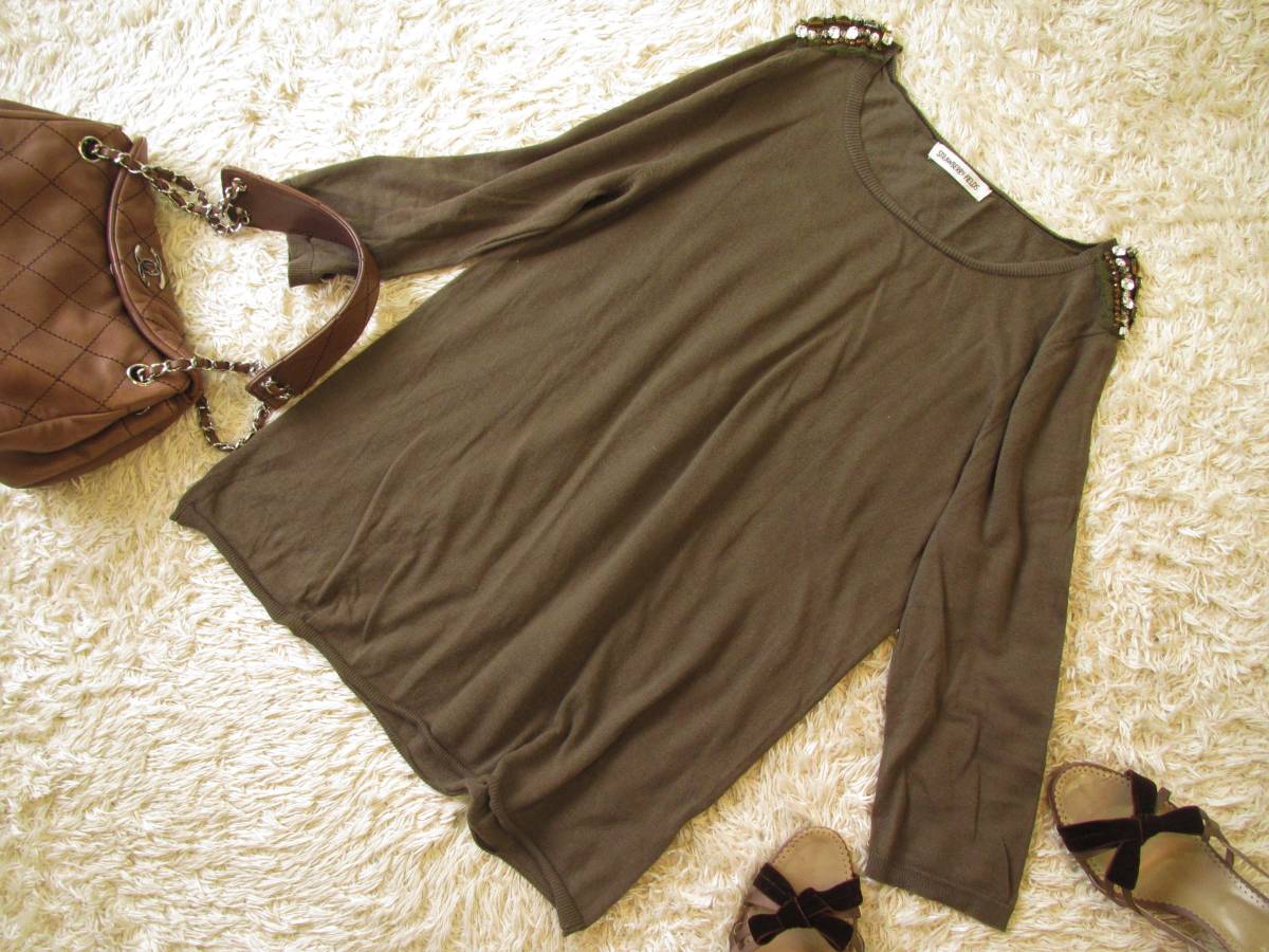 - ストロベリーフィールズ STRAWBERRYFIELDS 肩ビジュー カットソー カーキ