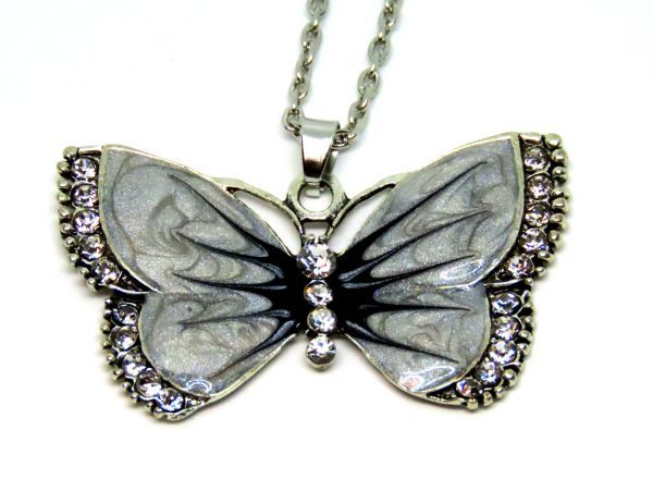 - キラキラ 蝶 ラインストーン ペンダント チョーカー グッズ ネックレス バタフライ アニマル 昆虫 グッズ マーブル
