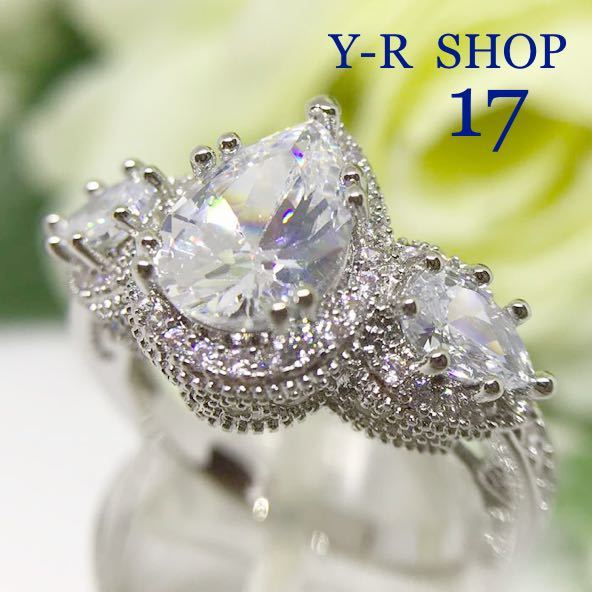 > 処分価格★17号★雫型ホワイトトパーズのクラシカルデザインリング★レディース指輪シルバー刻印925プレゼントczキュービックジルコニア
