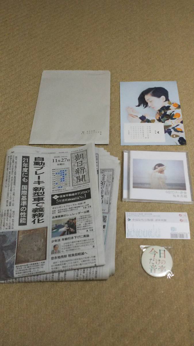 - 坂本真綾 今日だけの音楽 通常盤 初回シリアルナンバー欠 今日だけの音楽展特典付 朝日新聞2019 11/27 朝刊付