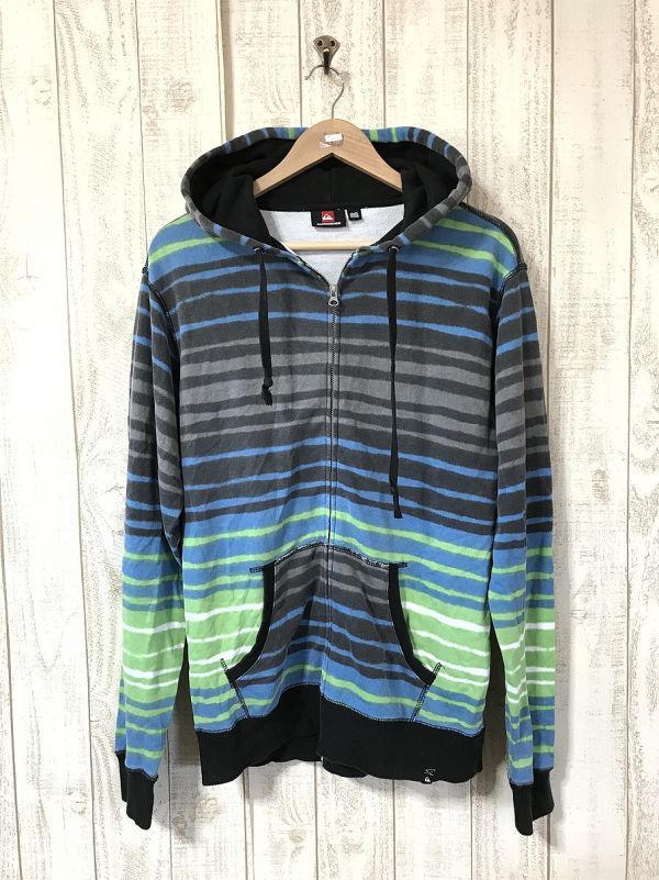 - 新着・【マルチボーダースウェットパーカー】QUIKSILVER クイックシルバー フロントジップ フーディー M