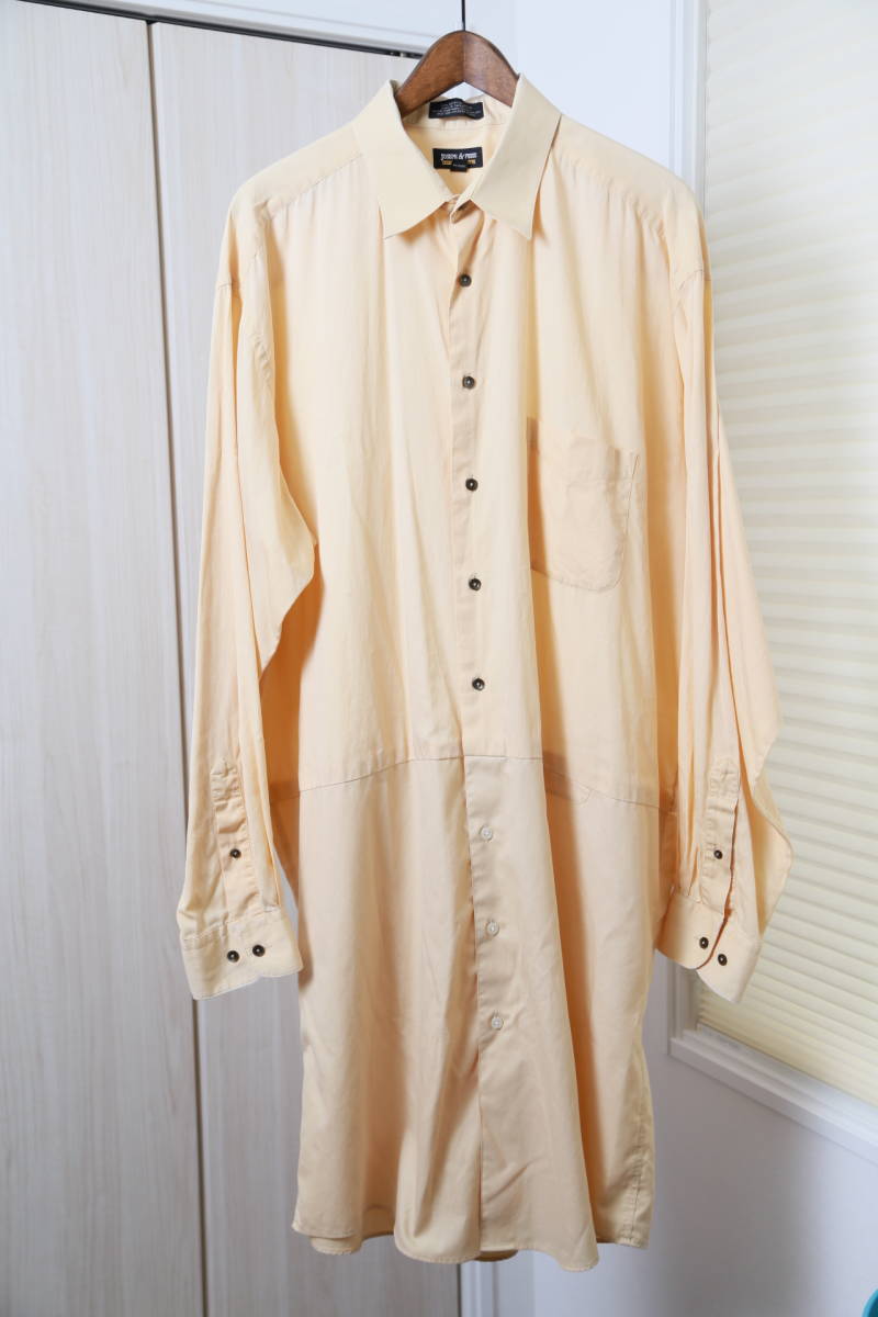 > ★オールド JOSEPH&FEISS異素材切替しリメイクシャツコート 古着ユーズド男性メンズMXLLイエロー黄色カスタムジャケットヴィンテージ