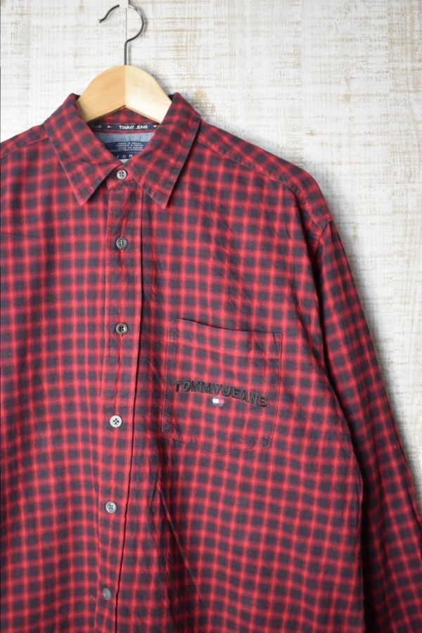> ☆US古着 TOMMY JEANS トミーヒルフィガー ネルシャツ チェック レッド赤ブラック【M】コットン ◆2056◆