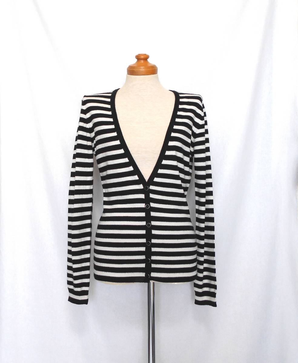 > 1点から送料無料☆ 美品 Le souk ルスーク ブラック ホワイト ボーダー カーディガン ( 黒 白 羽織物 きちんと カーデ モノトーン