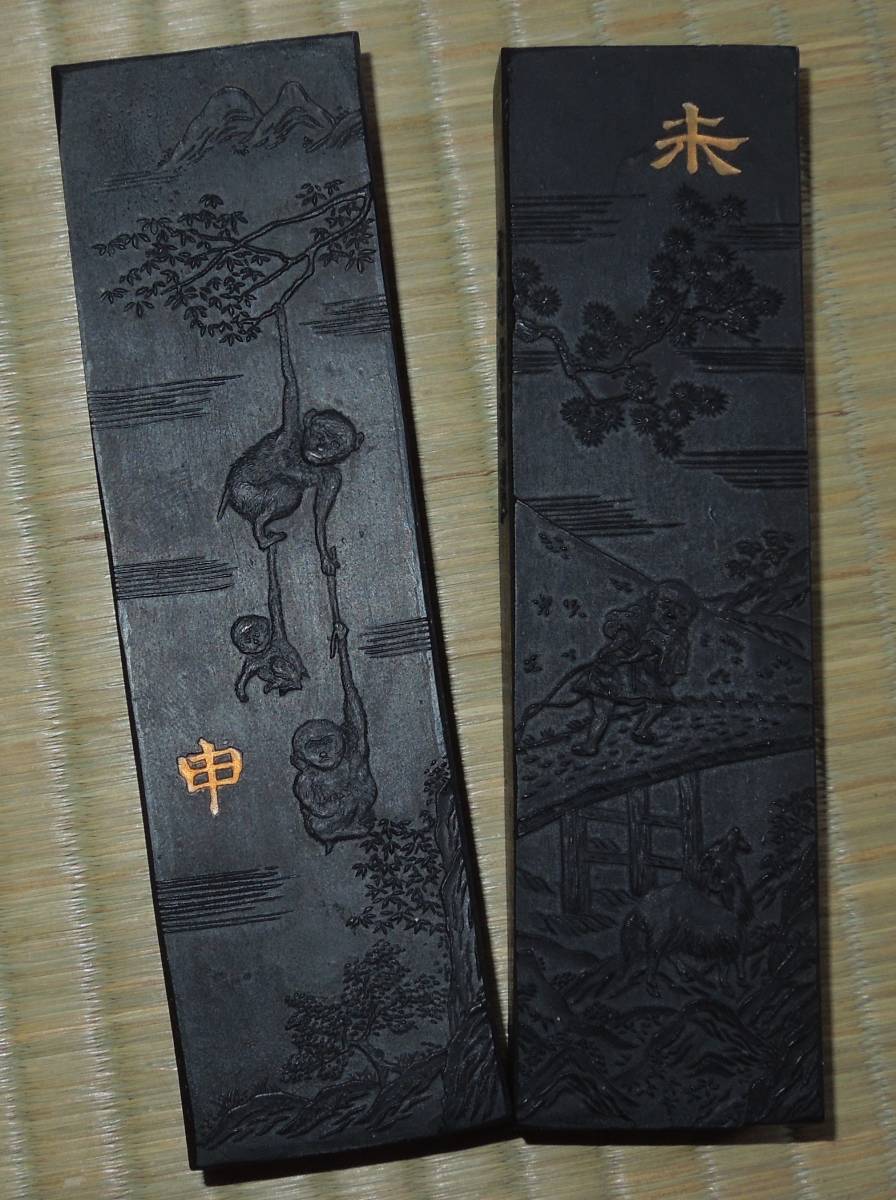 - 書道具 墨・古墨 玄林堂 6丁型 約90g×2点 ①未羊 ②申猿