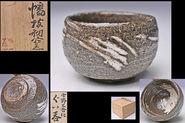 > 宇野三吾 ★ 幡枝初窯 ★ 刷毛目ぐい呑 ★ 共箱 ★ 小振りながら存在感のある逸品 ★ 酒器 ★検 宇野仁松 宇野宗甕 ★