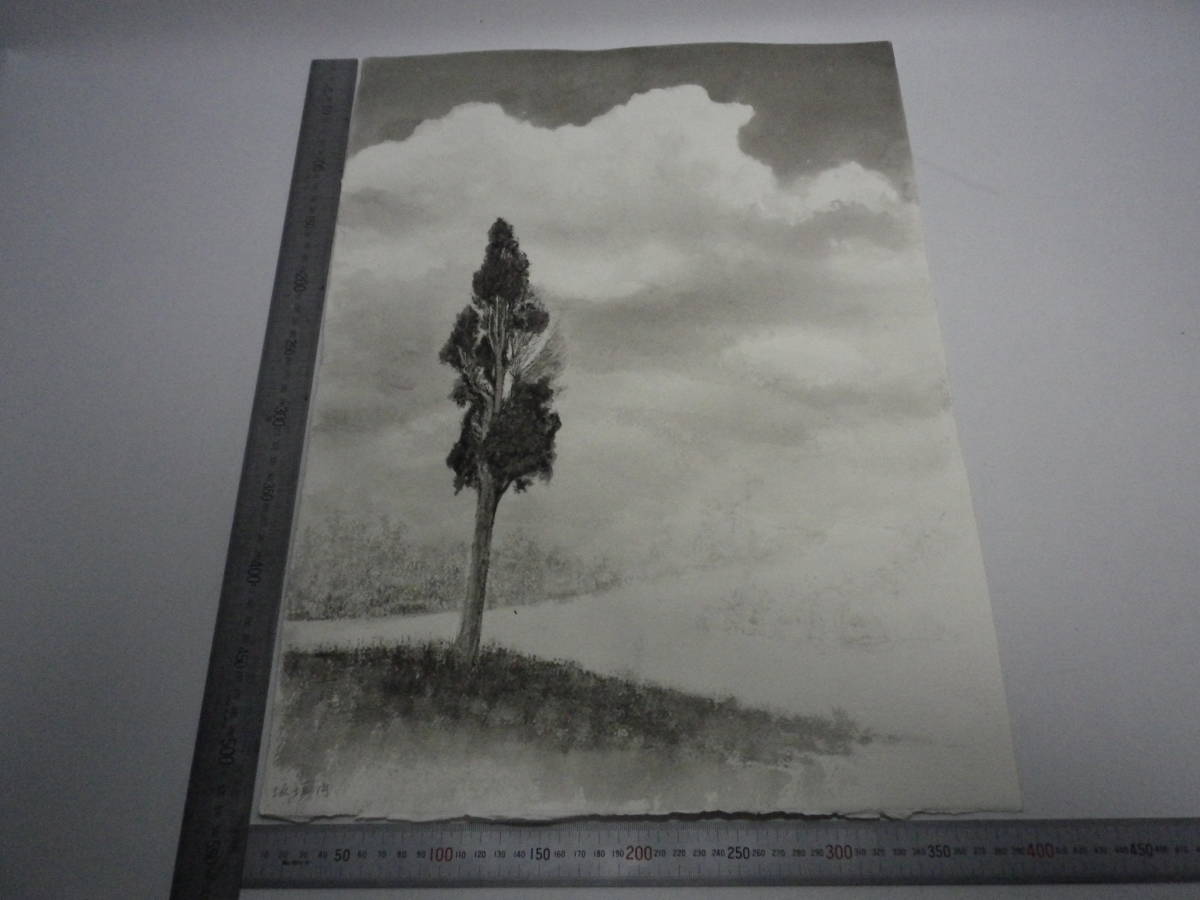 - 「立木1(裏表描画)」水墨画【坂垣内 将泰】作者直筆原画「真作」P10号ハーネミューレ紙(経年保管品)【送料無料】00700032