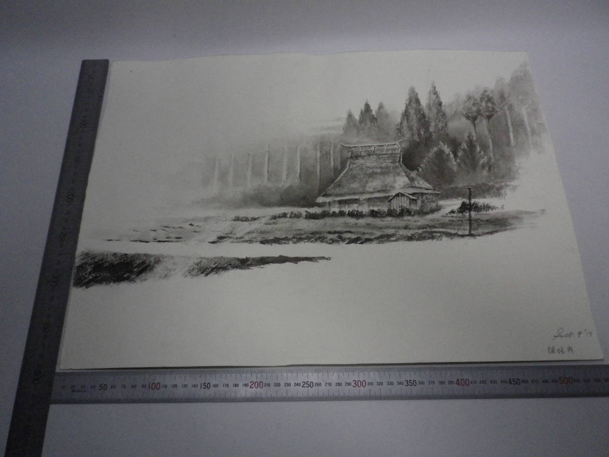 - 「かやぶきの里・京都美山町1」水墨画【坂垣内 将泰】作者直筆原画「真作」P10号ハーネミューレ紙(裏面試描有)経年保管品 送料無料 0700015