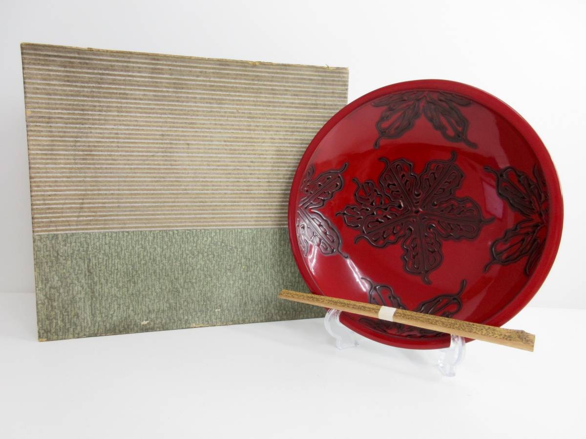 - 昭和レトロ・極美品◆菓子鉢 箸付 花柄 赤色 管理2002 N-9