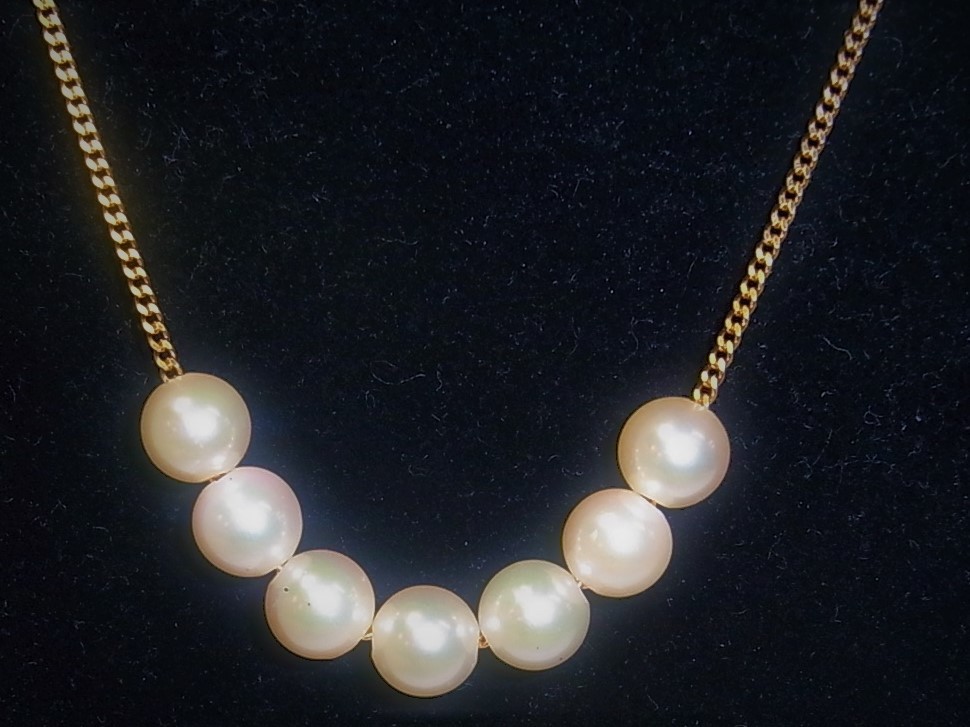 - 【東京 谷中 質屋おぢさん】K18 18金 パール プチ ネックレス パール アコヤ真珠 7ミリ 7ヶ付