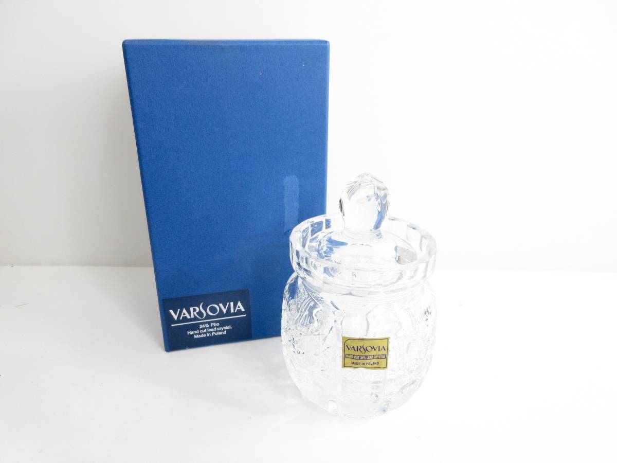 - 未使用品・レア!◆シュガーポット VARSOVIA バルソビア(ポーランド) クリスタル ガラス工芸 小物入 箱付 管理2002 N-9