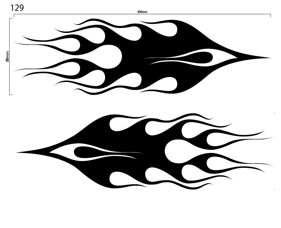 > 自作カッティングステッカー ファイヤーパターン 左右セット 129 89×300mm ネコポス対応可 ステッカー 商品同梱可 新品[S-175]