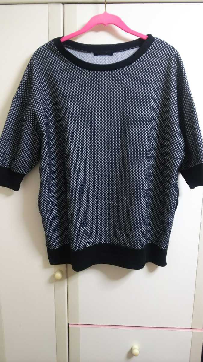 - ★JEANASIS★クルーネック 五分袖 柄カットソー 黒×グレー★フリーサイズ★ジーナシス★