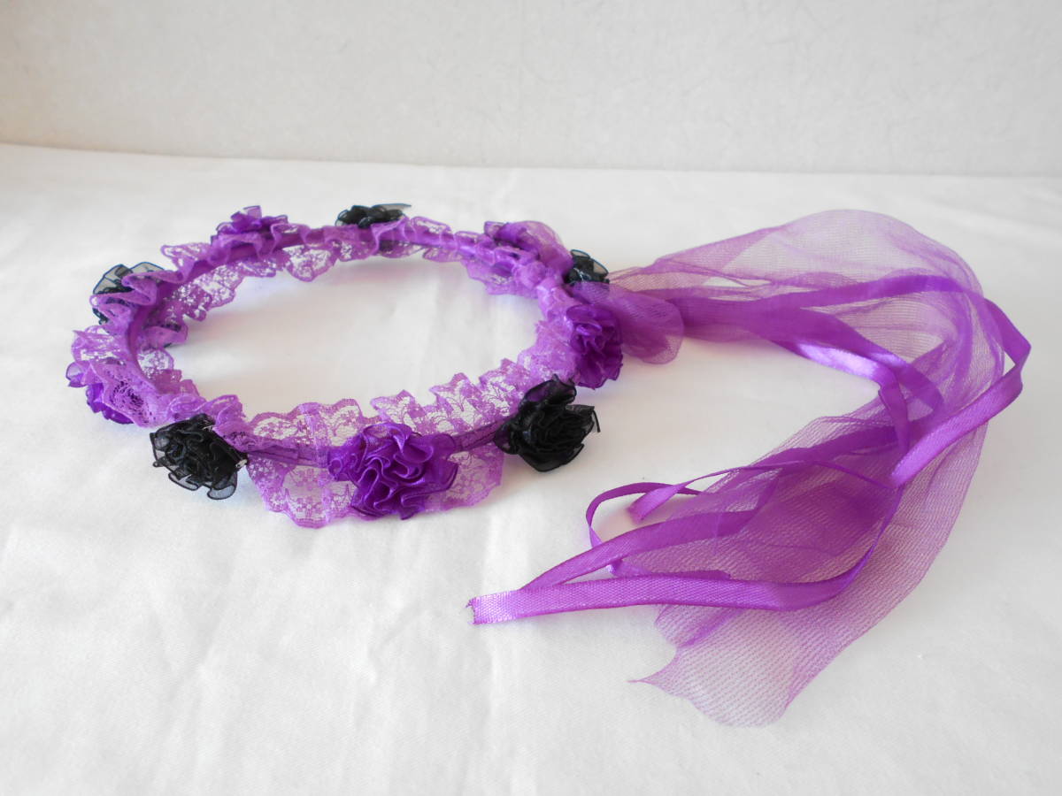 - ★未使用★お花とリボンが付いたカチューシャ・ティアラ ★パープル色 ☆ヘアアクセ・髪飾り ☆ハロウィン・パーティー