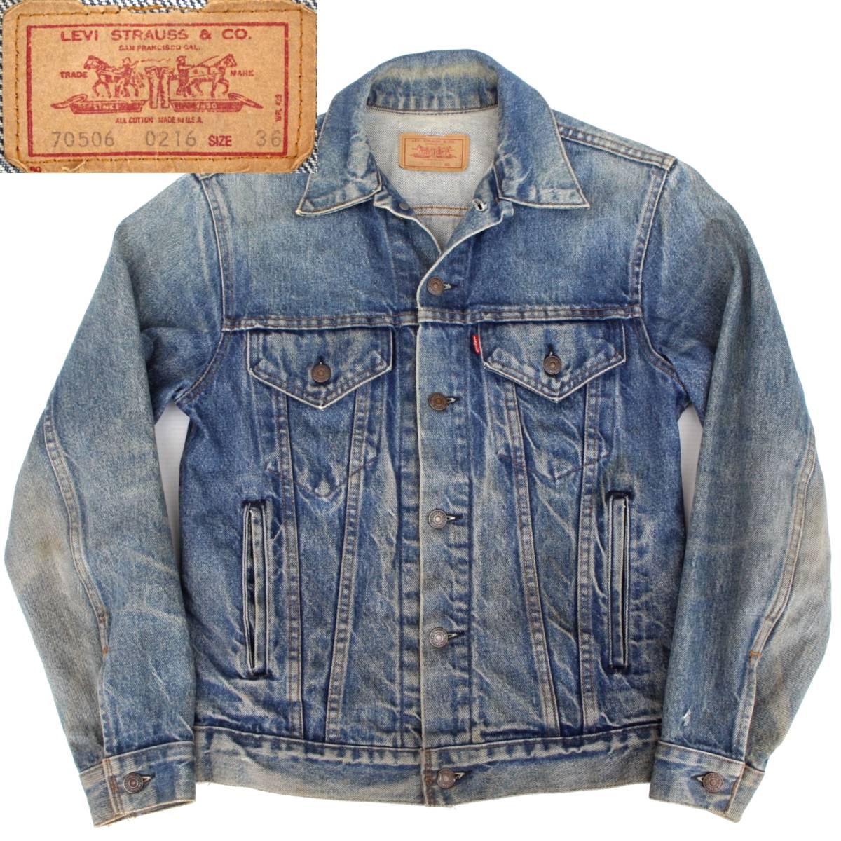 > (01159)70s-80s LEVISリーバイス70506-0216デニムジャケット36 (USA米国製アメリカ3rdサード70505-0217サイドポケット付)