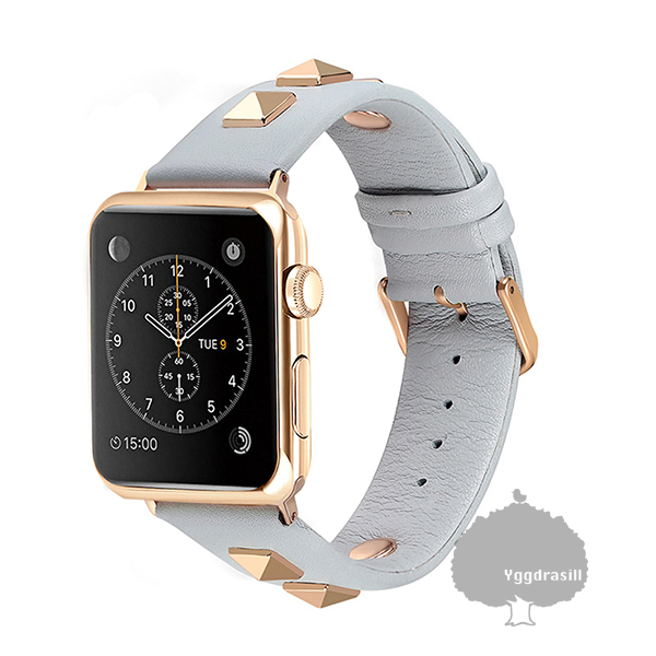 - YGG★Apple Watch アップルウォッチ スタッズ レザーバンド ベルト 水色 ライトブルー 38 40 41 対応 9 8 7 6 5 4 3 SE 交換 互換