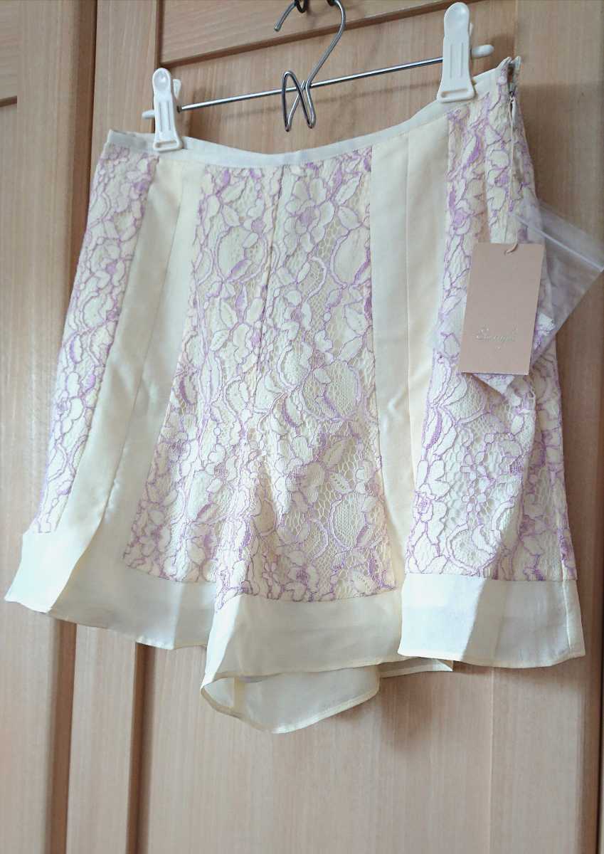 - タグ付 Swingle レディースS スウィングル フラワーレース ドッキングシフォン ショートパンツ アイボリー 日本製