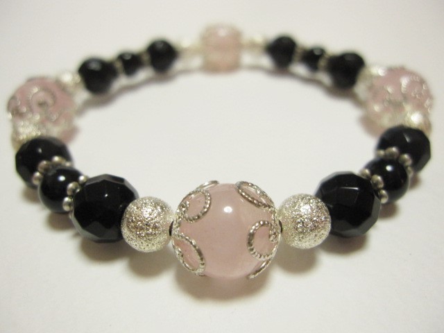 - *送料無料*天然石*パワーストーンブレスレット*ローズクォーツ×ブラックオニキス②*