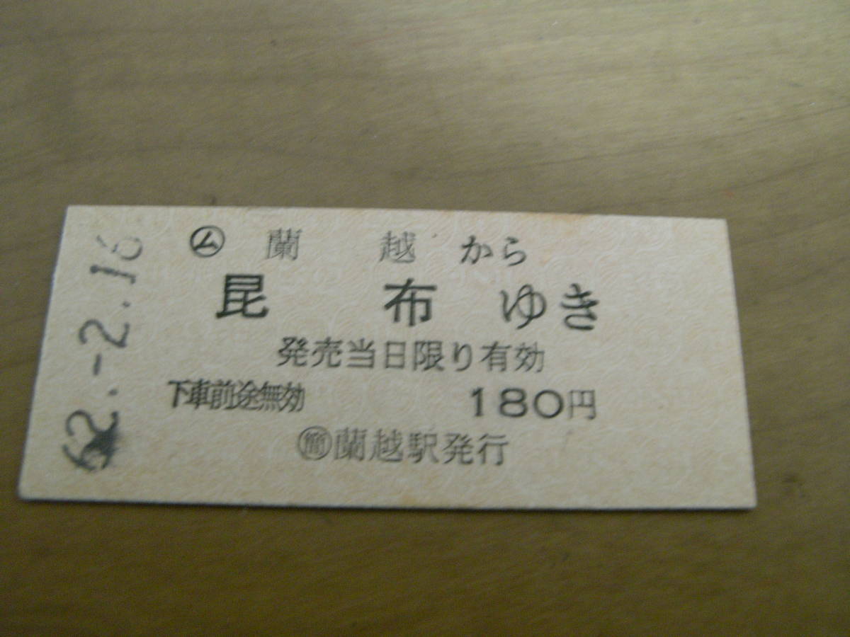 - 函館本線 蘭越から昆布ゆき 180円 昭和62年2月16日 蘭越駅発行