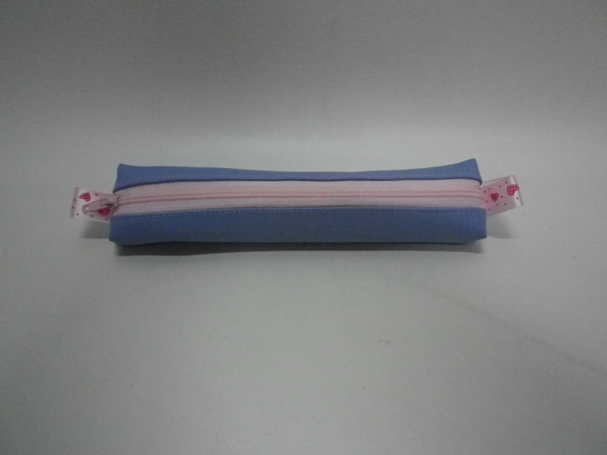 - 「ペンケース/水色系~ファスナー/ピンク・ハンドメイド」未使用【送料無料】「おかあさんのお針箱」00200250