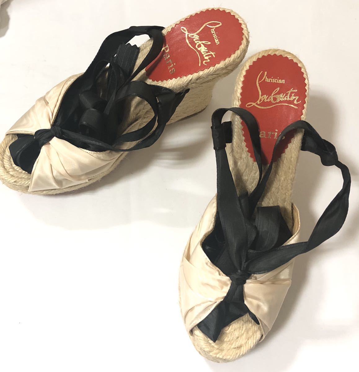 - 【質屋 尾張屋商店 東京】 ☆美品☆ クリスチャンルブタン サンダル ウェッジソール 麻 Christian Louboutin