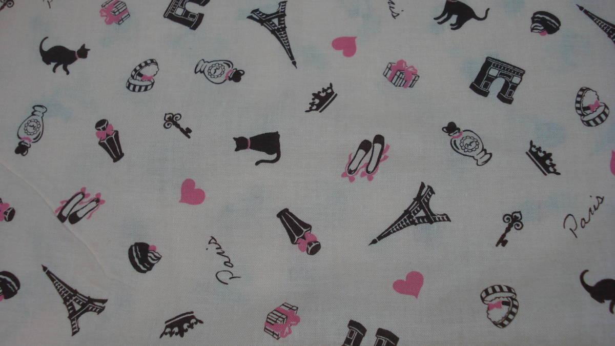 - ◆「黒猫・トラベル・B」(ピンク)約50㎝×約50㎝/ネコ・ねこ・猫◆エッフェル塔・コスメ