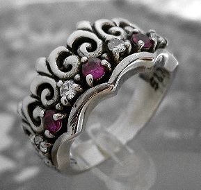 - シルバー925銀のレッドジルコニア付フレア クラウン王冠リング/13号.15号.17号より/S&A silver