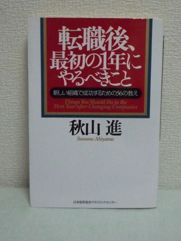 - 転職後、最初の1年にやるべきこと 新しい組織で成功するための56の教え ★ 秋山進 ◆ 組織のツボの押さえ方 転職後の処世術 転職常識のウソ