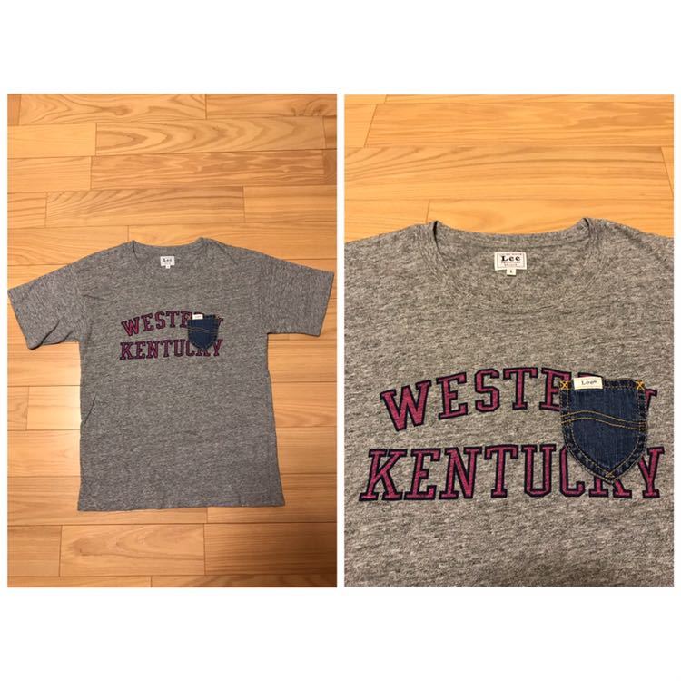- 着用3度程.極美品☆Lee UNION MADE/リー サイズL小さ目 ビンテージ織り.肉厚ヘヴィコットン生地 ポケットTシャツ 染み込みプリント 霜降り