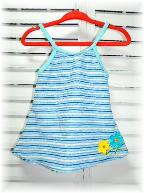- ヤマトヤ Aライン ワンピース水着 80cm ライトブルー系ボーダー(ラメライン入り)