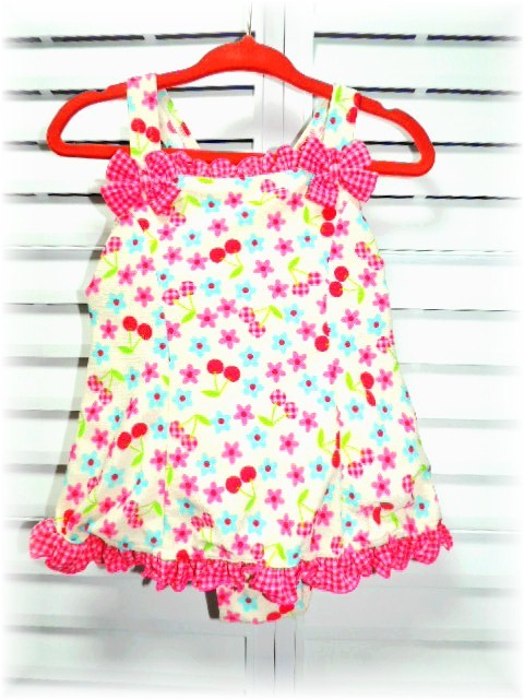 - Nikki リボン・フリル飾り バッククロス ワンピース水着 90cm ホワイト地×さくらんぼ・花柄