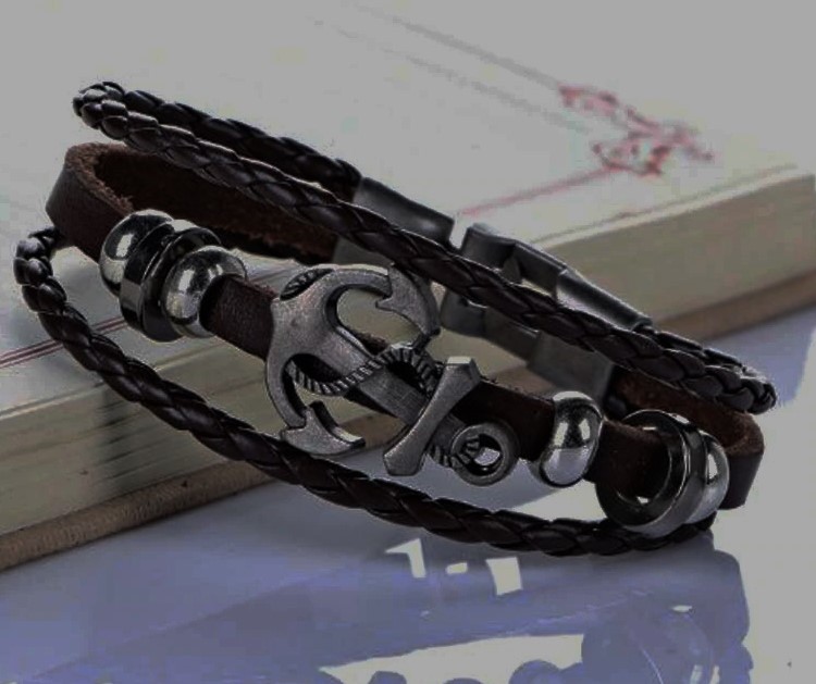 - [アンカー 碇 イカリいかり ブレスレット茶e] 海 船 合 皮 ボート 川 港 碇 海上自衛隊の戦艦の錨 漁師の漁船の錨 ヨットの錨 タンカーの錨