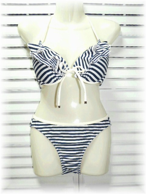 - フリル飾り セパレート水着 9号/M ホワイト×ネイビー ボーダー