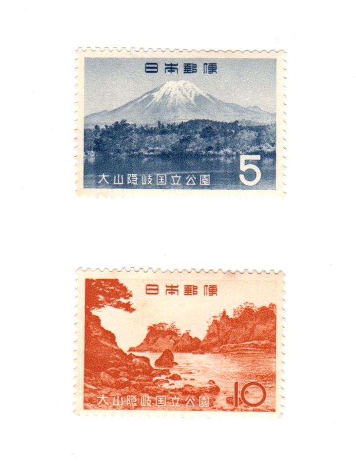 - 昭和40年1965「第2次国立公園切手 大山隠岐/赤松の池と大山~隠岐浄土が浦」5円・10円切手・未使用【送料無料】「熊五郎の切手」00800204